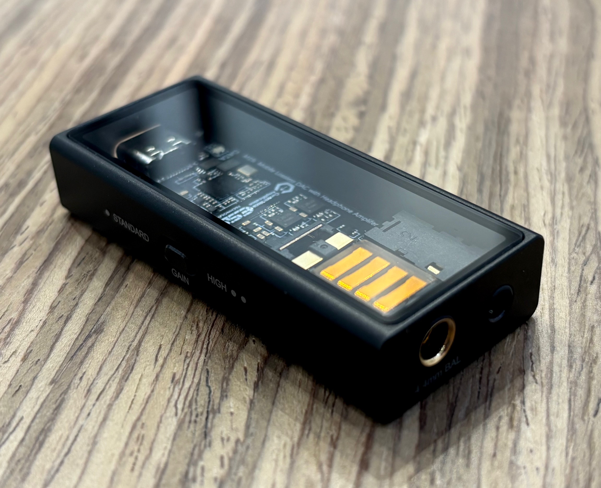 Cette conception permet d’atteindre d’excellentes performances, avec une distorsion mesurée à seulement 0,0003 % et une réponse en fréquence étendue de 20 Hz à 80 kHz. La puissance peut atteindre 22,6 mW sous 300 ohms sur la sortie jack 4,4 mm et 11,9 mW sous 300 ohms avec la sortie mini-jack 3,5 mm. Ainsi, ce DAC portable peut aussi bien alimenter des écouteurs très sensibles que des casques à haute impédance. Un sélecteur de gain à deux niveaux assure la bonne association.